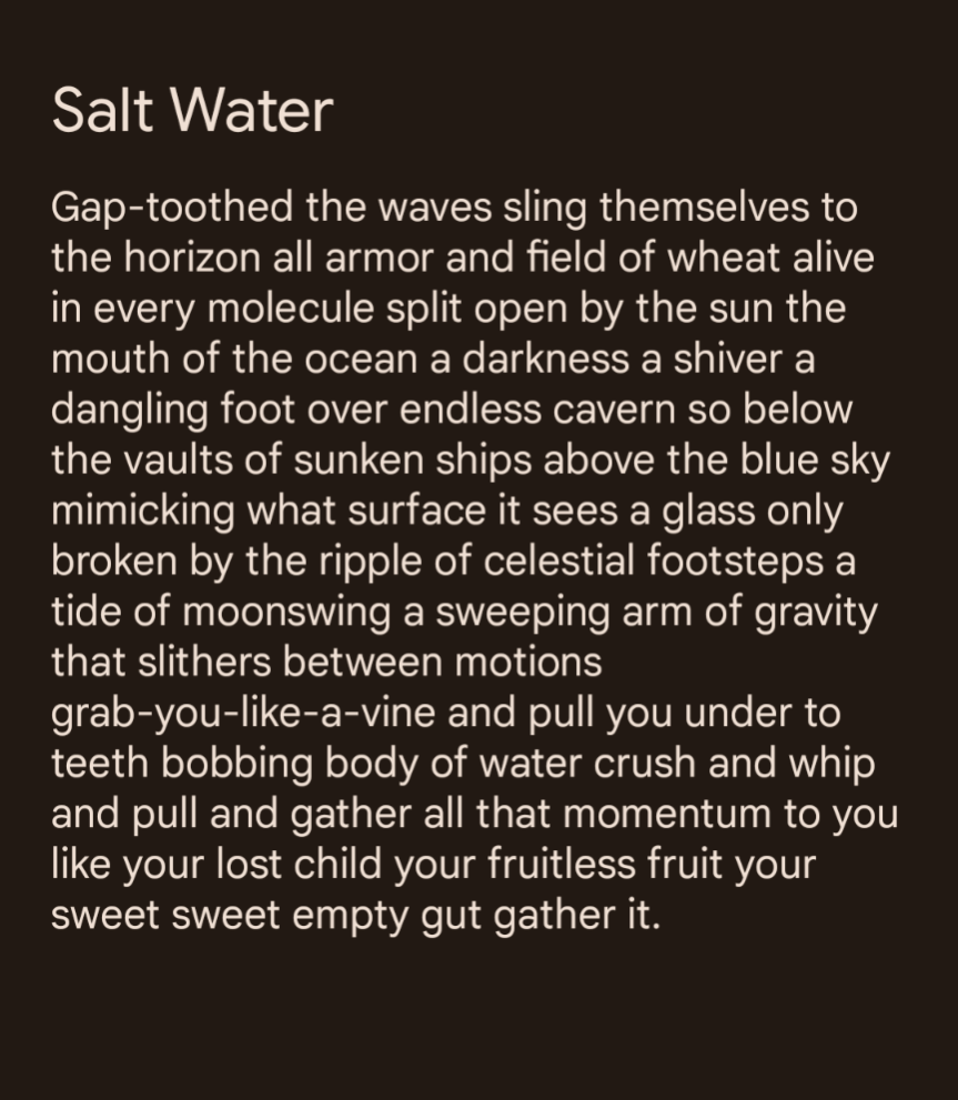 April 20, water. Here’s a poem in progress for your sunny April evening.